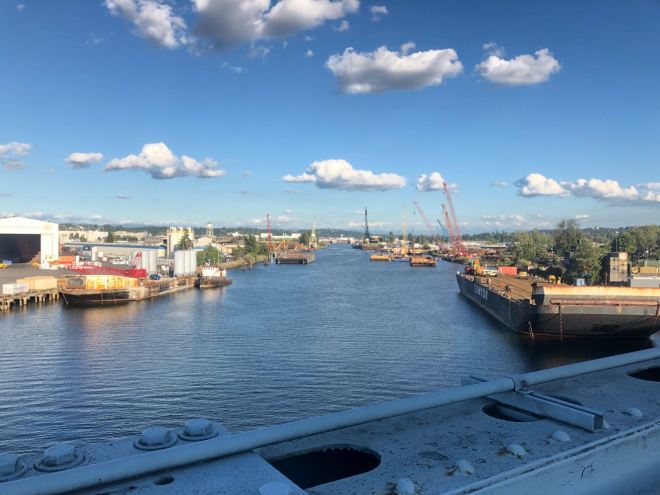 Endlich, ohne Bein-, Rückenschmerzen und plattgesessenen Ar…. pünktlich in Seattle angekommen. Der Sitz neben mir war die ganze Zeit frei, also konnte ick mir richtig schön breit machen. Taxi geschnappt und ab zu meiner Airbnb Unterkunft. Airbnb, Internetplattform zum Vermieten von „privaten“ Zimmern, Wohnungen. In Ermangelung eines Druckers hab ick die Adresse mit dem Smartphone abfotographiert vom Bildschirm. Zur Sicherheit 2 x. Auf der Fahrt dann die Adresse noch aufn Zettel gekritzelt. Den Zettel dem Taxifahrer gegeben. Taxi stoppt am Ziel?!?!? Nö, Industriegebiet..