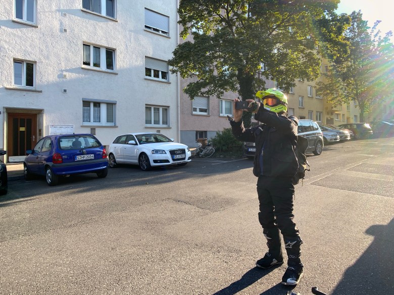 (Kommentar Jessie: Ich möchte kurz erwähnen, dass ich die ganze Fahrt über zum Zahlen an den Tanken IMMER mit Helm an den Schalter gegangen bin und es nie ein Problem war. In Stuttgart… in Stuttgart ist alles anders. Ich betrete die Tankstelle und werde von einer Dame hinter Plastikscheibe von oben bis unten gemustert. Ich gehe zu ihr vor und nenne meine Nummer.