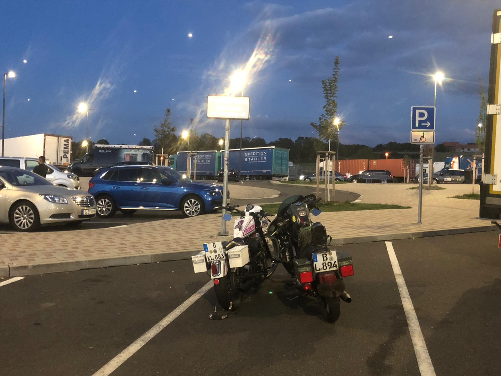 Dann machten wir uns auf Richtung Süden über die BAB. Staufrei und trocken. Kurz vor Kassel booking.com wir ein Hotel bei Kassel. Da wir kein Bock auf, Einbahnstraßen, Baustellen in einem Fremdgebiet hatten, nahmen wir ein Hotel auf einem Autohof.