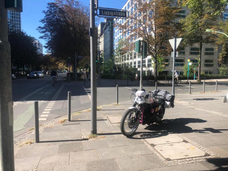 Fahren wir übern Bürgersteig… A) So eng zugeparkt, kein Durchkommen mit Moped zum BÜRGERsteig.. ( Bürgersteig ?? In NEU SPRECH Steuerzahlersteig ?? ) und Bordsteinkante zu hoch für tiefergelegte Sportys….